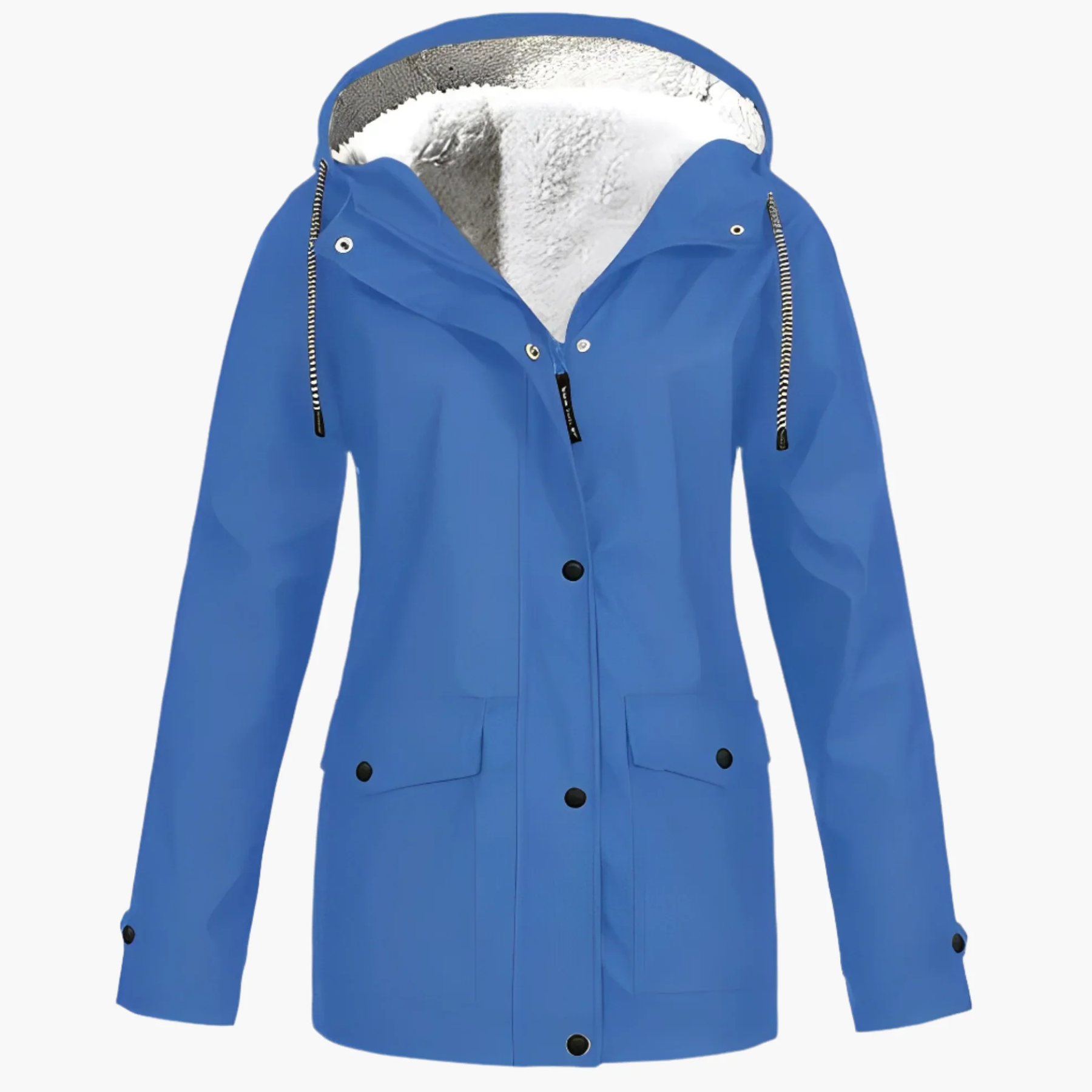 Lining: The main body of the jacket is lined with textured material, extending into the hood.
